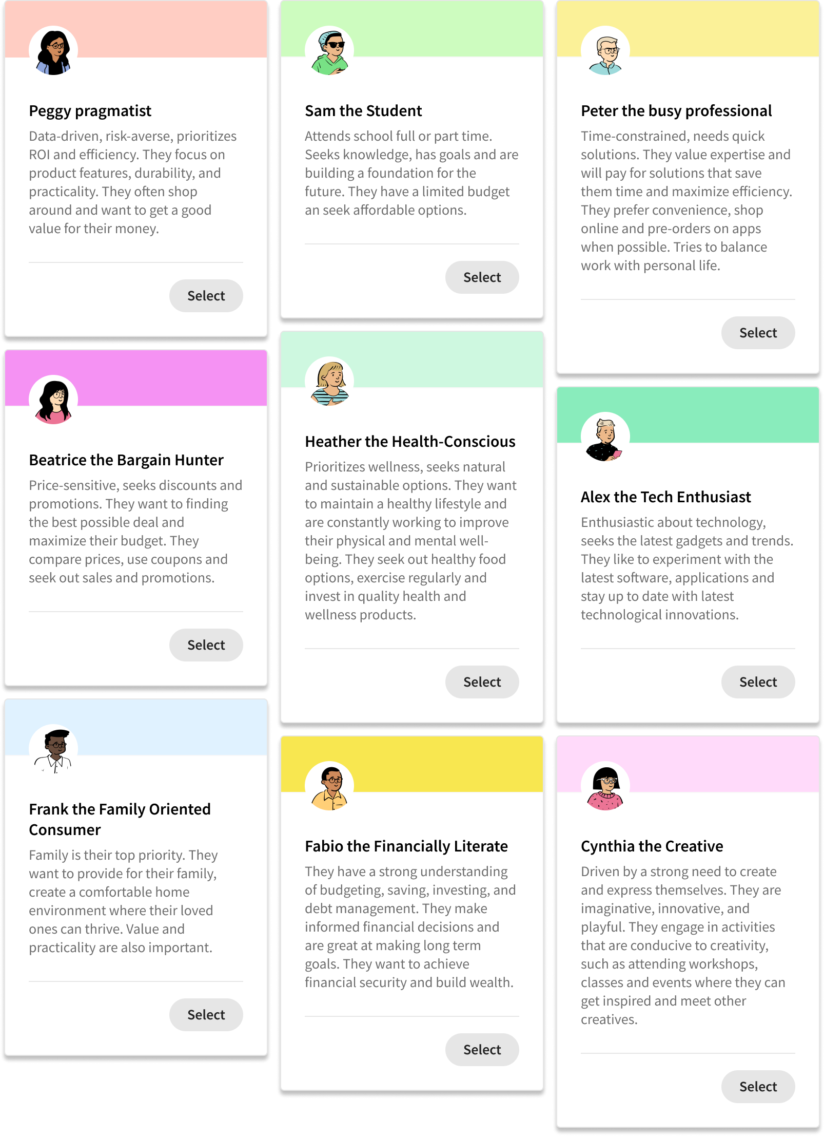 Translate your copy for anyone. Choose from a list of predefined personas.